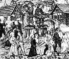 fig. 43: Fastnachtstanz (Carnival Dance) in Schwyz, 1509, from Luzerner Chronik des Deibold Schilling, 1513 |