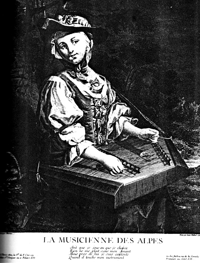 Each of the five 18th century illustrations is full of character; they portray players from Flanders, Germany and the Alps (engraved in Paris) and all show solo performers. Three of the five show girls playing, and three also have poems inscribed under them. However the point of greatest significance is that each player is shown holding his hammers in the old way, between the first two fingers.