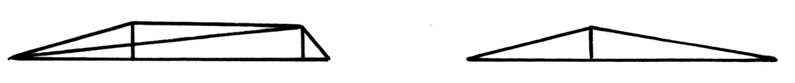 The instrument portrayed in the figure has been described in recent times as bridgeless, but from the later reference to extra bridges across the body, it seems that Mersenne was simplifying his drawing for the sake of understanding, and that in reality the treble bridge did divide the strings as normal: only if this were the case, would the cut-out portions in the treble bridge be needed and would the little single bass bridge B need to be separated from the treble bridge; although this lowest string could sound a fourth below its neighbour because of greater mass or tension, it seems on balance more likely to be because of increased length. Nevertheless, the fact of the bass bridge being solid cannot be explained away, except by omission or because it was not thought necessary to give every detail: if the two bridges shown were treble and bass, then the treble strings would normally pass through the bass bridge and it would need cut-outs similar to those of the treble bridge; to put it another way, there is no bridging system which combines a solid bass bridge and a treble bridge with cut-outs. Such a system would produce planes as in fig. 74 and since the bass strings are not accessible, provides no more notes for a given size of instrument than does a single treble bridge.