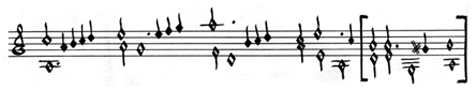 Even as a fragment to illustrate a working principle the music is perhaps a little ungainly. One might imagine that the occasional note was misplaced by one space or line - a common enough error - at some stage before it was intabulated, and the following result might then be considered more satisfying: