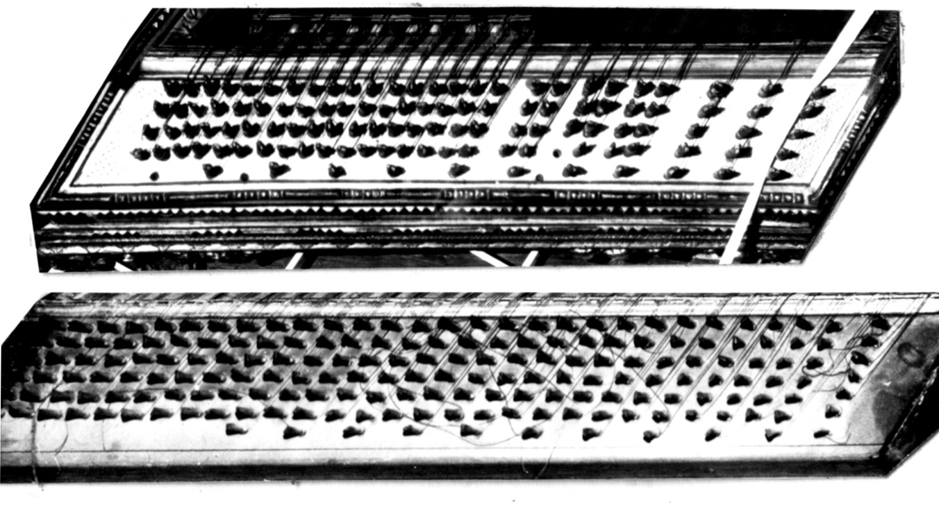 A corollary to this is that in every surviving instrument, the wrest-pins are mounted in the top of the wrest-block: side mounting was by this time characteristic of instruments in the santur area.