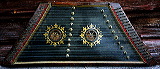 - soundholes decorated with black-and-brown inlaid compasses, and gold painted outside the soundboard