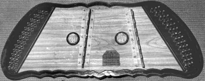 fig.236: 'Butterfly harp' of Ephraim Segerman Photo: DK click on the bridges for a closer view of them and on the hand-written notes in the middle for a closer view of them