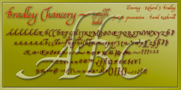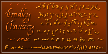 This family of fonts has four members: the basic plain font has regular and bold weights, and each of those has its swash variant (labelled 'italic') which you can use to replace single letters giving a dash of spice at the beginning or end of a word, phrase or line. Of course you can use the swash forms together, but it's a pretty stressful effect and that's not our idea!