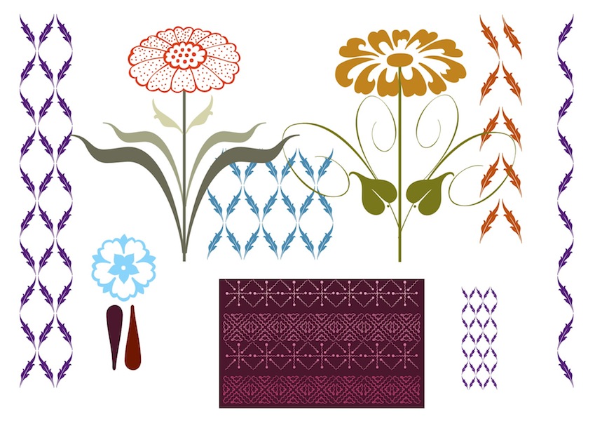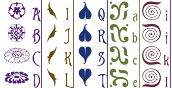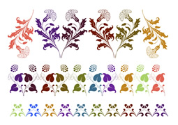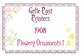 you can click on most of the thumbnails for a full-size image! In 1908 the Gefle Post printers in Sweden published a hard-cover type catalogue, stuffed full of delightful fonts and ornaments; they were only a provincial printing house, but the catalogue shows nearly 400 different founts, the great majority decorative - just think of the job it was for the apprentices to put everything back after a job was finished! Then there's a page of silhouettes, two pages of corner vignettes and two coloured title pages - and page after page of delightful ornaments and borders - most of it in the most elegant Art Nouveau style: enough to keep a keen font-maker busy for a very long time! Here's a first taste as a video clip, showing how I reconstructed the original pattern from the various elements, then, one stage at a time, added greys, colours and embossing ... Watch for LOTS more! Warmest thanks to antiquarian book-seller Olof Salmonsson for the stimulus! |