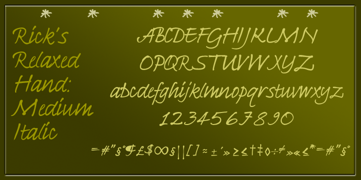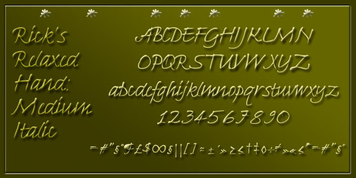 Relaxed italic calligraphy from Richard Bradley, a complement to his more formal Fine Hand and Bible Script, very usable for greetings card, invitations, notices, whatever you like ... Drawn by Rick, font and 'posters' by David.
