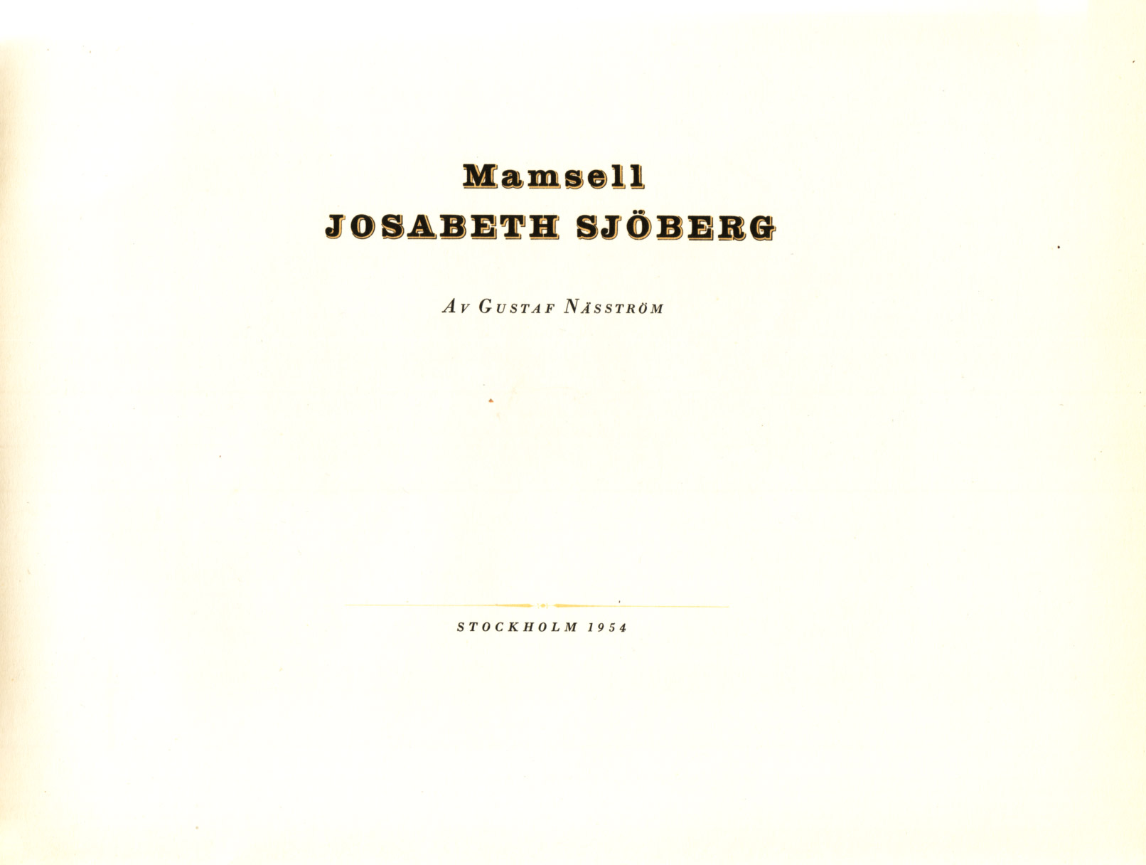 Hennes konst har också rönt den äran att reproduceras i färg i ett specialnummer om naiva konstnärer, som den utmärkta schweiziska månadstidskriften DU gav ut 1948, och man kan vänta sig att amerikanerna, som under de senaste decennierna börjat odla sina egna småborgerliga primitivister från 1800-talet, skall bli intresserade för henne. En akvarellutställning av Josabeth Sjöberg i Museum of Modern Art i New York? Ja, tanken verkar svindlande men den är inte absurd, så långt har vi kommit i vår uppskattning av den äkta naiviteten tvärs genom flödet av elegant och modebetonad konsthandlarkonst.